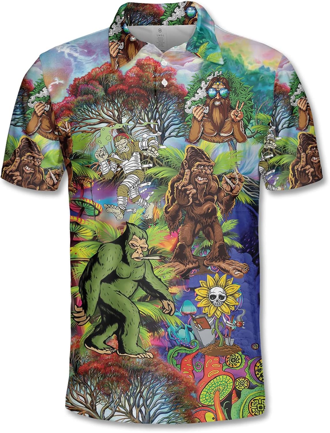 Funny Bigfoot Golf Shirts for Men Dry Fit, Tropical Bigfoot Magic Golf Polo Shirt, Mens Golf Polos Golfing Gift Idea