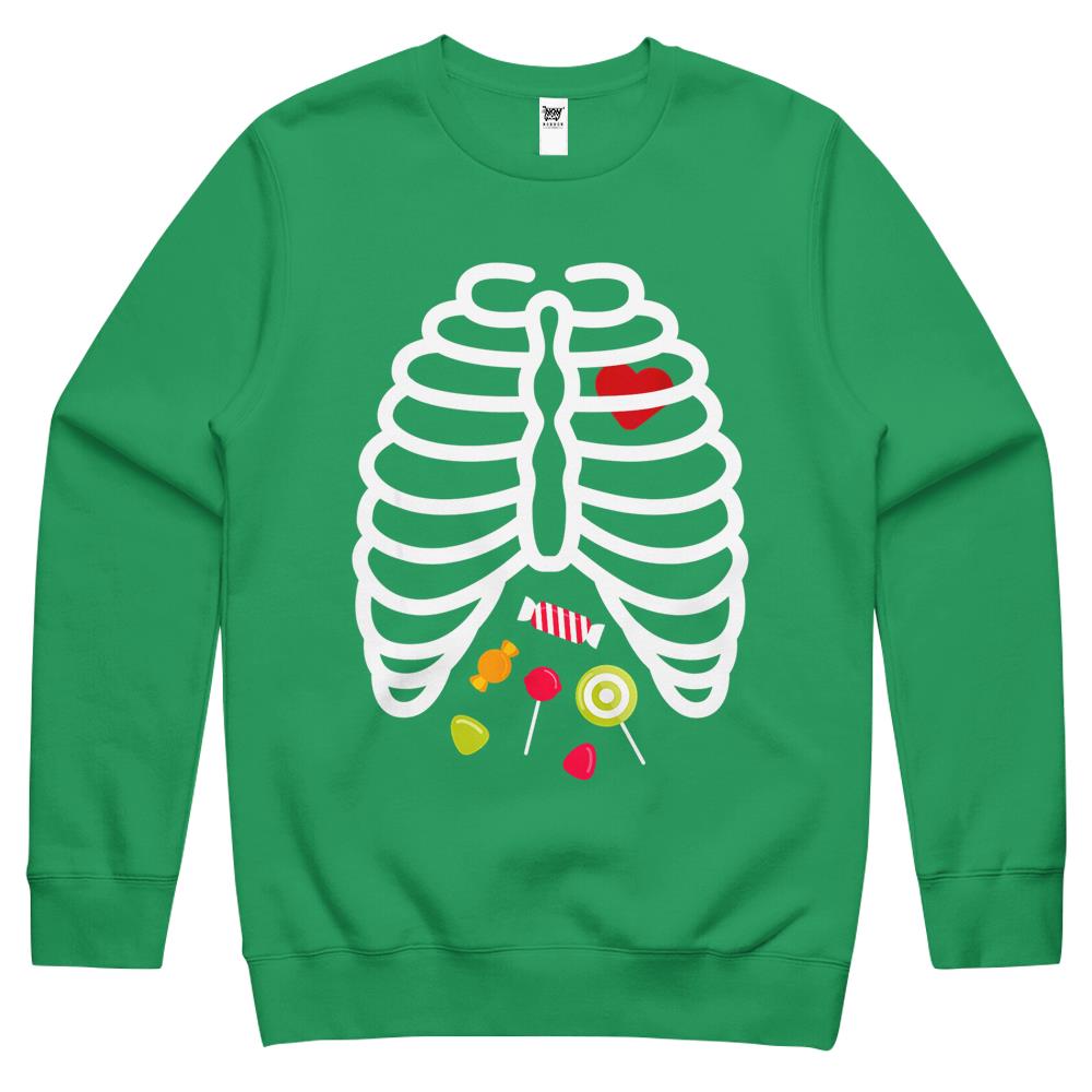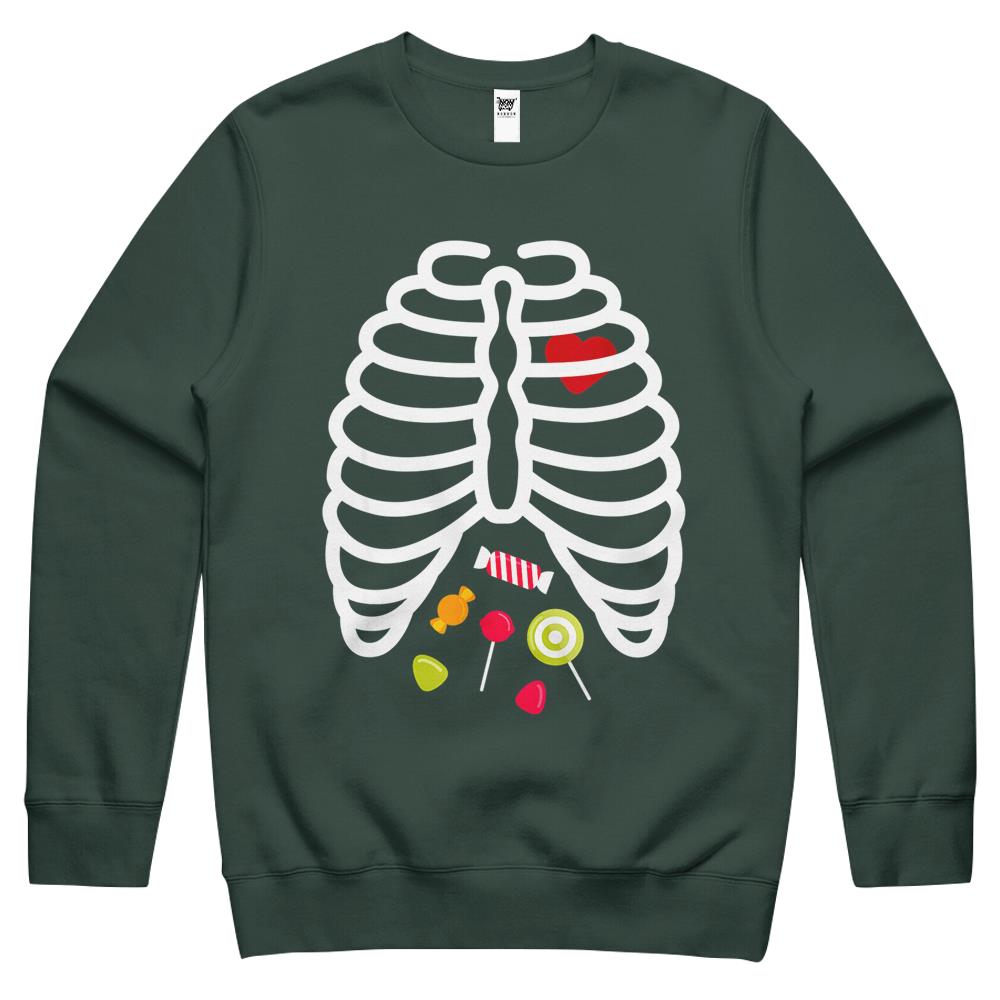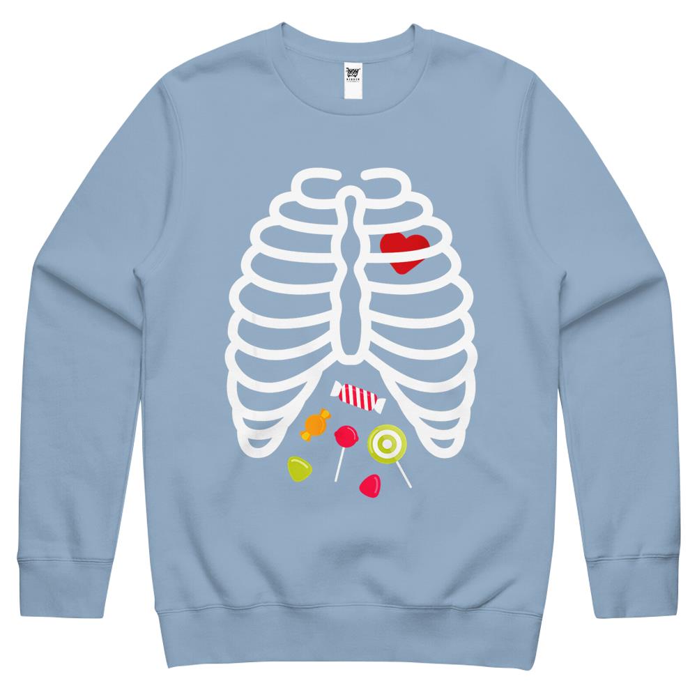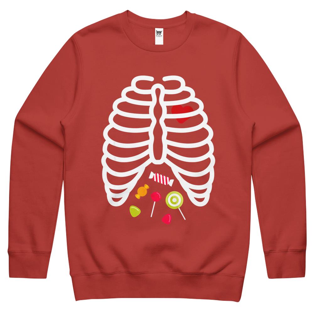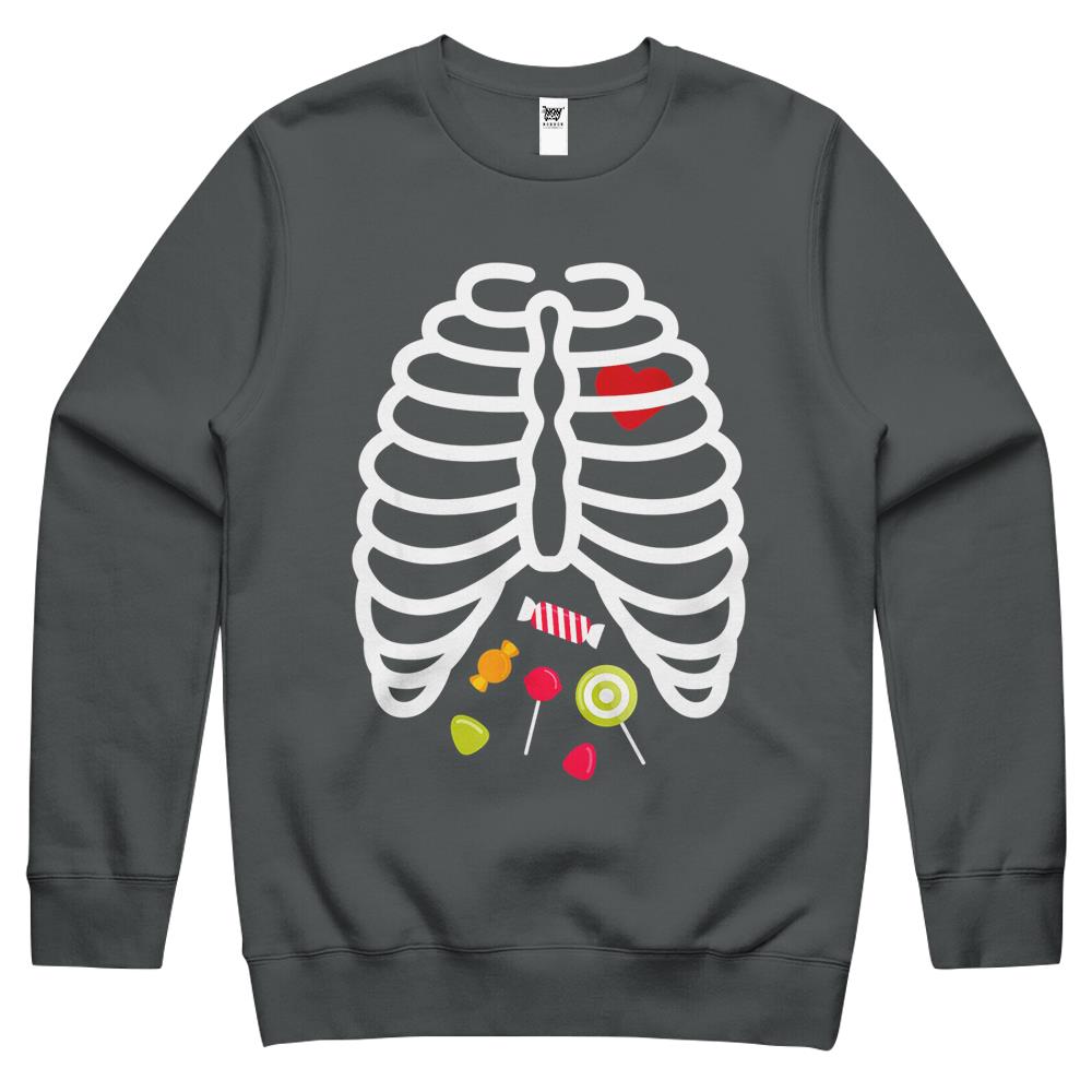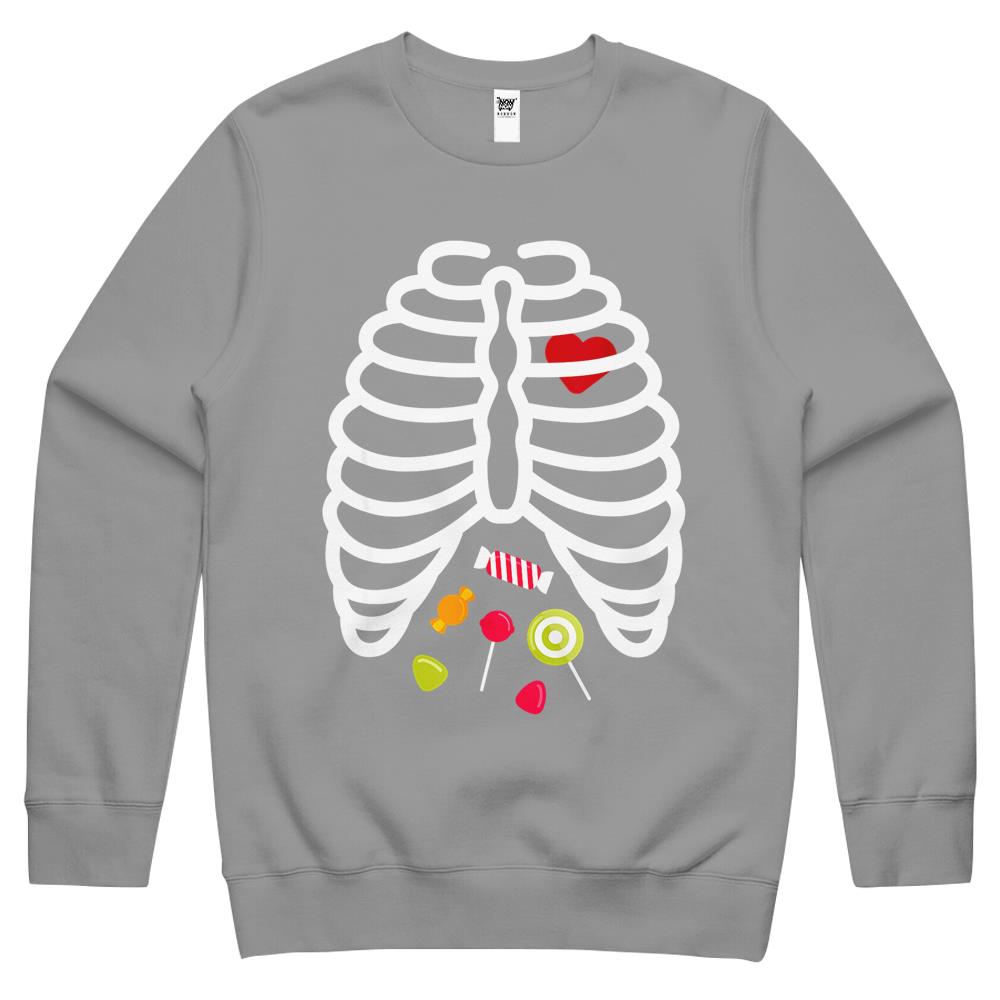 Halloween Crewneck Sweatshirt, Halloween Shirts For Women Men, Halloween Crewneck Sweatshirt, Skeleton Rib Cage Heart Candy Cute Shirt Adult Crewneck Sweatshirt