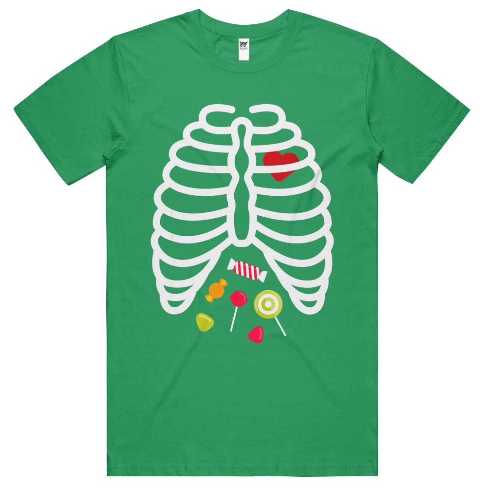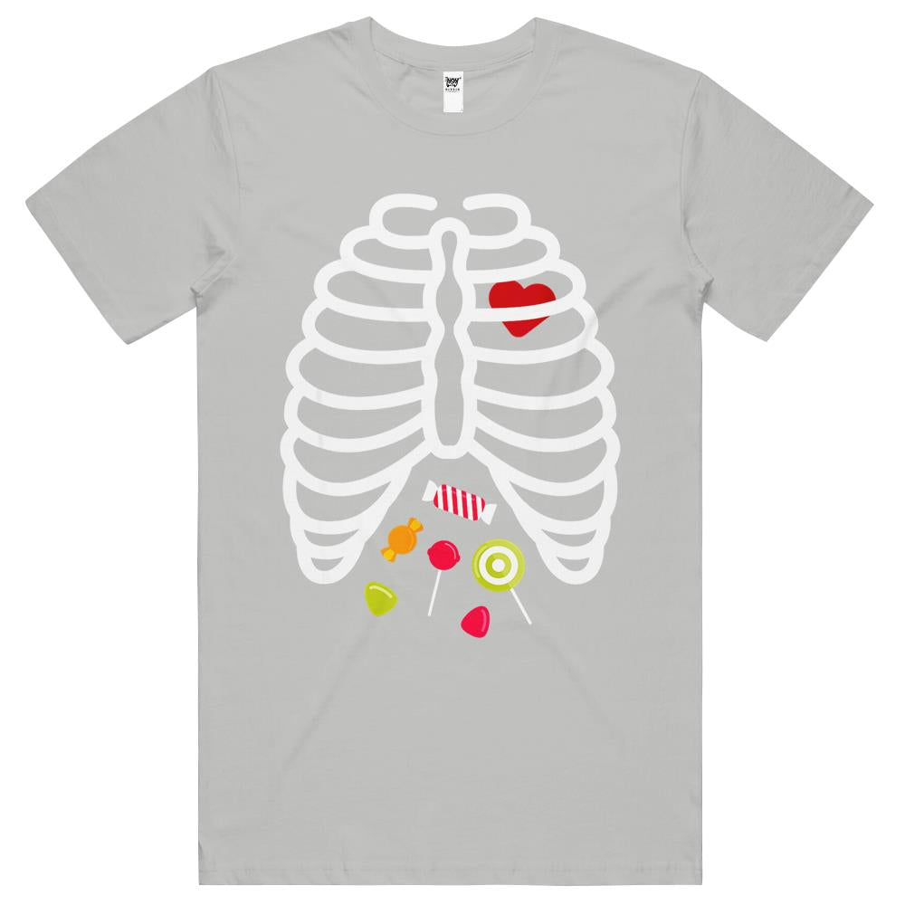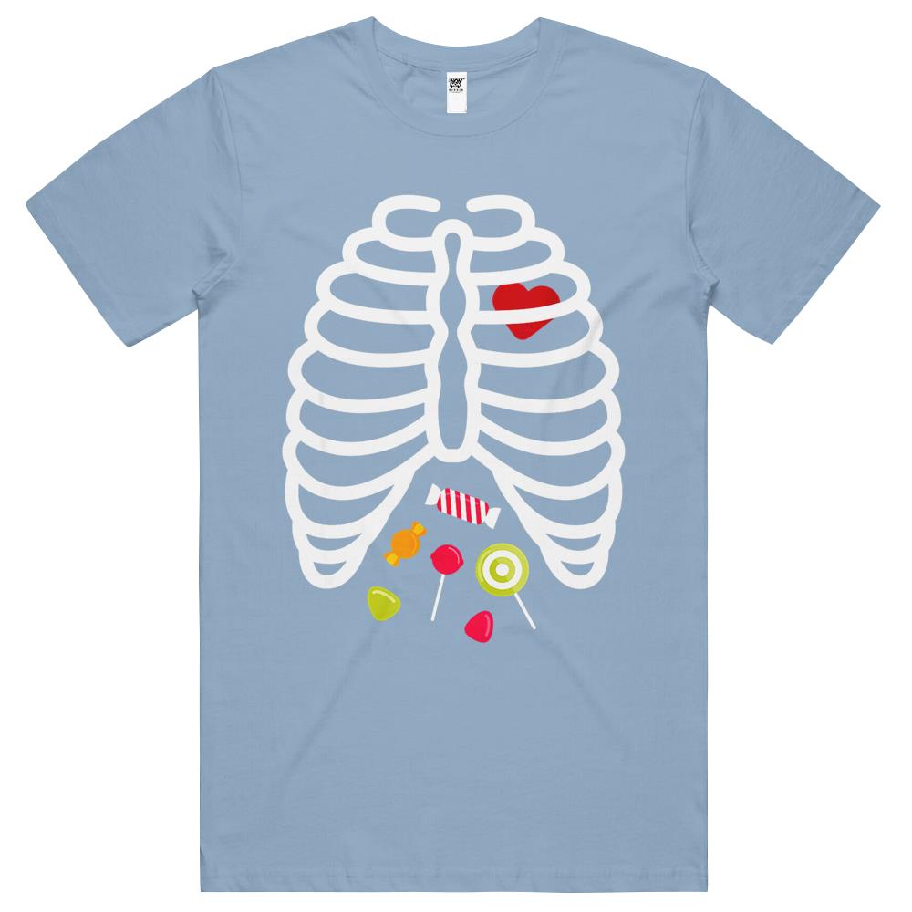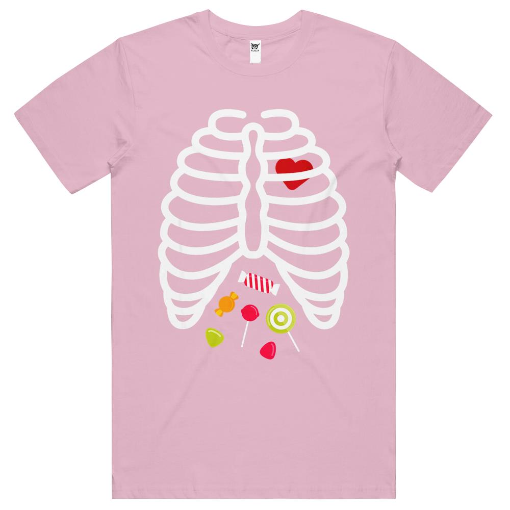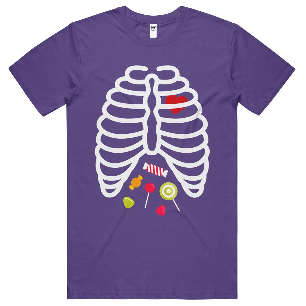 Halloween Tshirt, Halloween Shirts For Women Men, Halloween T Shirts, Skeleton Rib Cage Heart Candy Cute Shirt Adult T Shirts